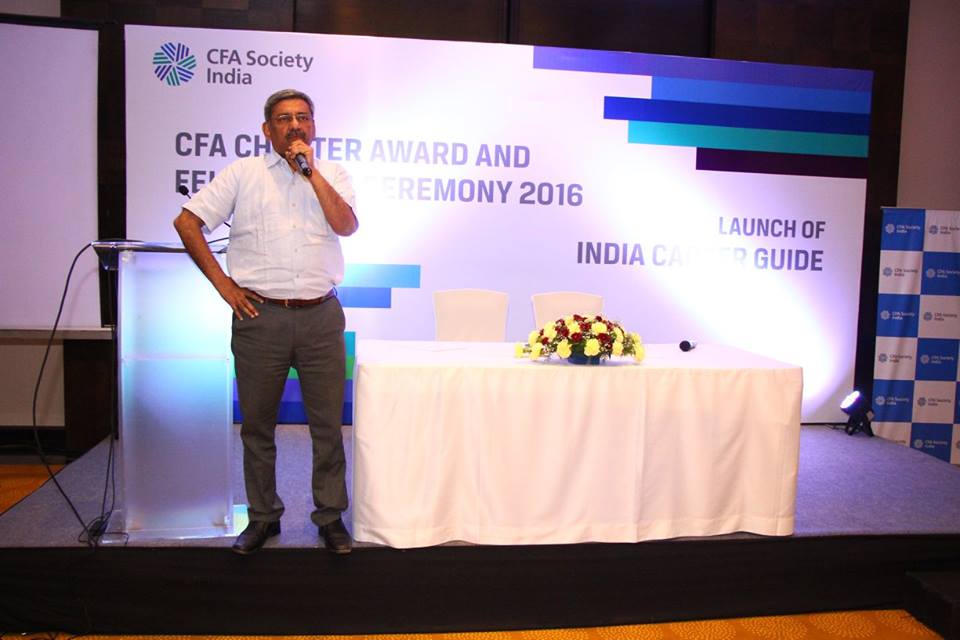 Sunil Singhania, CFA explained to the audience as to how our economy is positioned and how the CFA designation fits as the gold standard in investment management industry. He mentioned that earning the Charter is the beginning of the professional journey. He congratulated the newly minted charter holders for all the efforts they had put to go through the rigor of taking exams.