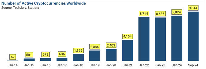 [11] Howarth, Josh. (Updated 2024, March 12). How Many Cryptocurrencies are There In 2024? Exploding Topics. – https://explodingtopics.com/blog/number-of-cryptocurrencies