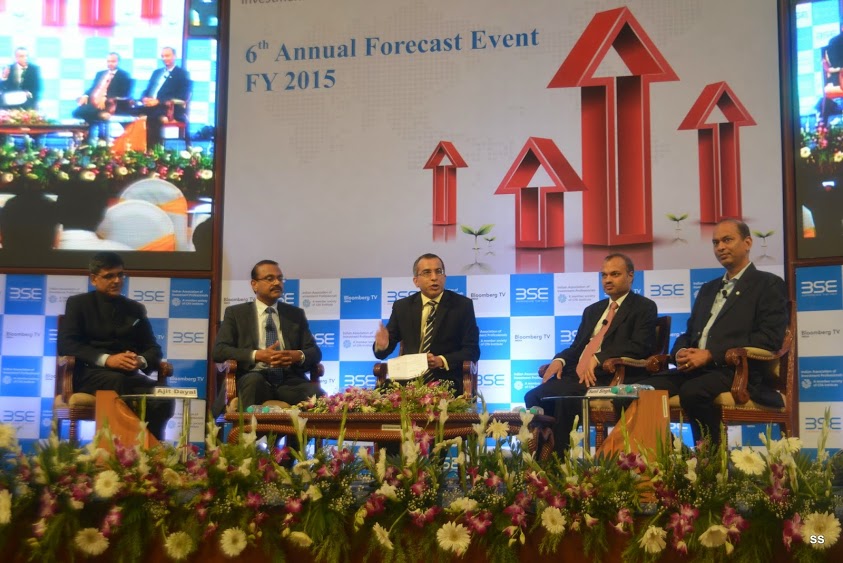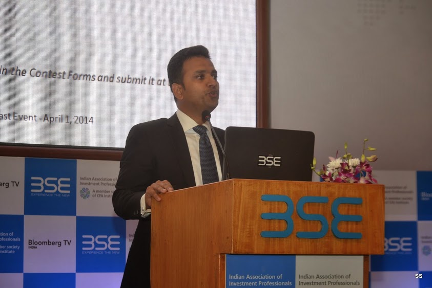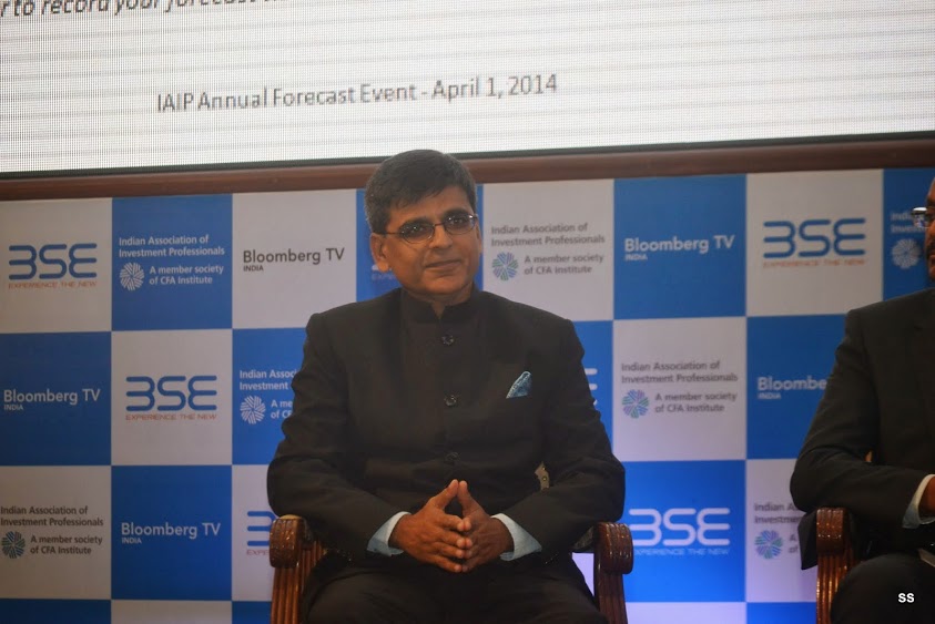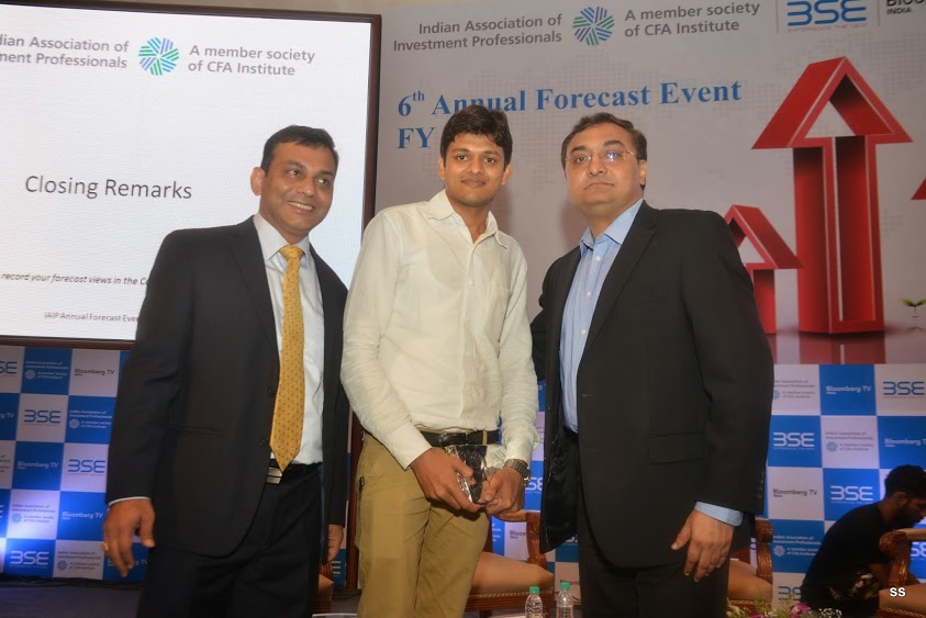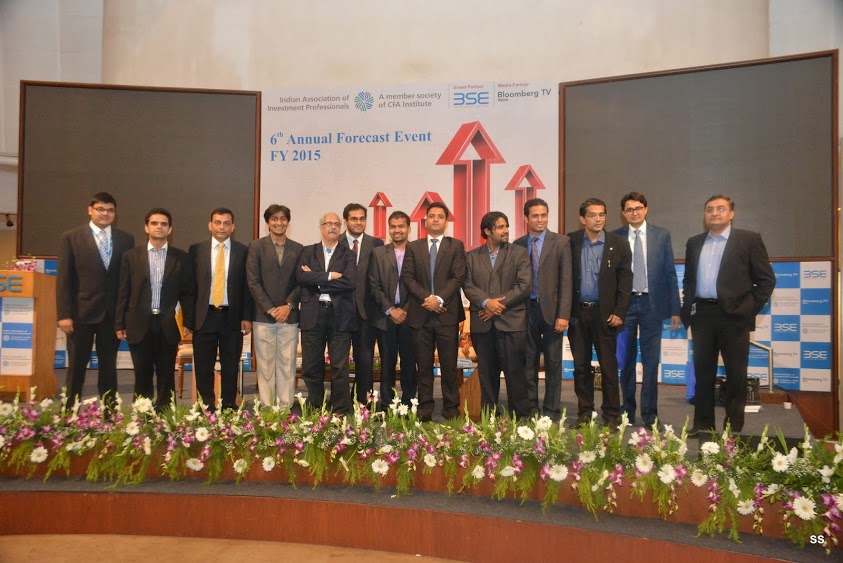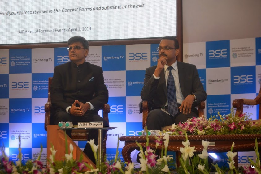 In keeping with its hallowed tradition, IAIP organized its 6th Annual Forecast event at the iconic International Convention Hall at the BSE on 1st April 2014. The event was moderated by Saurav Mishra, CFA. The program started off with the President’s address, delivered by Jayesh Gandhi, CFA, President IAIP. He gave an overview of the IAIP and described the context of the forecast event. The next address was delivered by V. Balasubramaniam, Chief Business Officer, BSE, who highlighted the transformational changes at the BSE. BSE has entered into JVs with S&P Dow Jones, as well as having data sharing agreements with Deutsche Borse. It has captured dominant market share (80-90%) in SMEs and MF platforms, as well as drastically reducing response time in the new trading system. This was followed by the much-awaited panel discussion. The luminaries included Ananth Narayan, Ajit Dayal, Jyoti Jaipuria and Sunil Singhania, CFA. The panel discussion was moderated by Vivek Law, from Bloomberg Television. The discussion was wide-ranging and covered the entire spectrum of topics from General Elections to FII fund flows and relative attractiveness of various asset classes. Next, the names of the winners of the FY14 Forecast Contest were announced. The event was concluded with a Vote of Thanks, followed by networking.