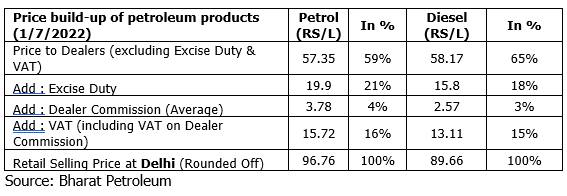 The economic impact of higher oil prices can also be examined from how the fuel pricing happens in the country. The data depicted in the table shows that there is a heavy tax component to the overall pricing which can be tweaked based on how it impacts the end consumers. In times of rising oil prices, the government can choose not to pass on the increase by calibrating the taxes and vice-versa. Any decrease in taxes will mean a decrease in revenues for the government which will increase the fiscal deficit. Hence, using this tool can at best be a temporary fix, while in the long-run higher oil prices will essentially result in high fuel prices at the pumps.