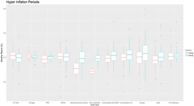 We analyze asset class characteristics in all the five regimes and to check different response of these asset classes to each regime. However, for this article we focus on just the hyperinflationary regimes as these periods are more prolonged and frequent in comparison to high inflation regimes. This prolonged nature of the regime also gives investors a chance to take measures to improve the inflation resiliency of their portfolios. We study these time-series separately and also a combined dataset.