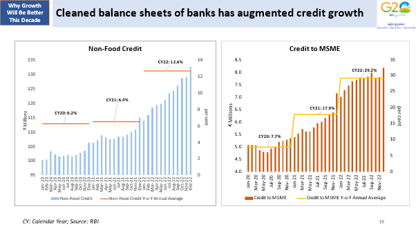Banks now have much cleaner Balance Sheets. This has led to good credit growth to MSMEs. Almost half of the total resources raised by non-financial enterprises in April-Jan, FY23 was from banks. Last year, this share was at 26 per cent, indicating the massive growth seen on this front.