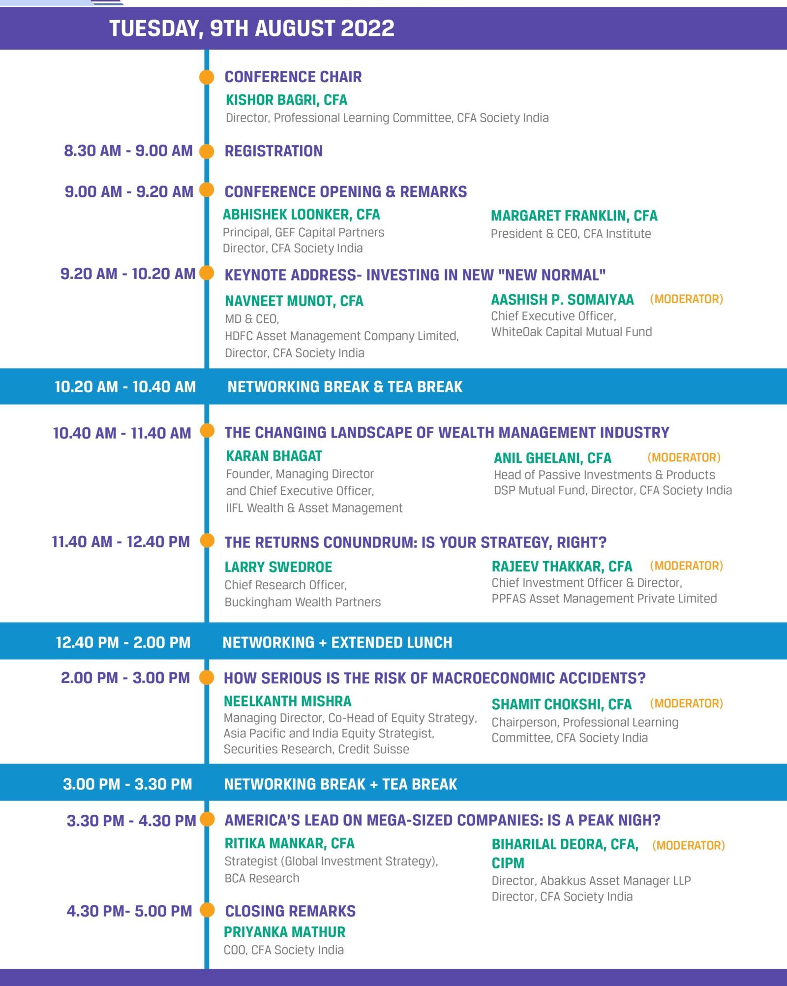 To deliberate and know more on how these changes will shape the industry for the future, come attend CFA Society India’s 7th annual Wealth Management conference. This year’s conference will be a full day live event with an exciting list of carefully selected speakers. The conference will be hosted at Taj Lands End on 9th August. A half day wealth management in practice workshop will be offered for registered attendees on a first cum first served basis.