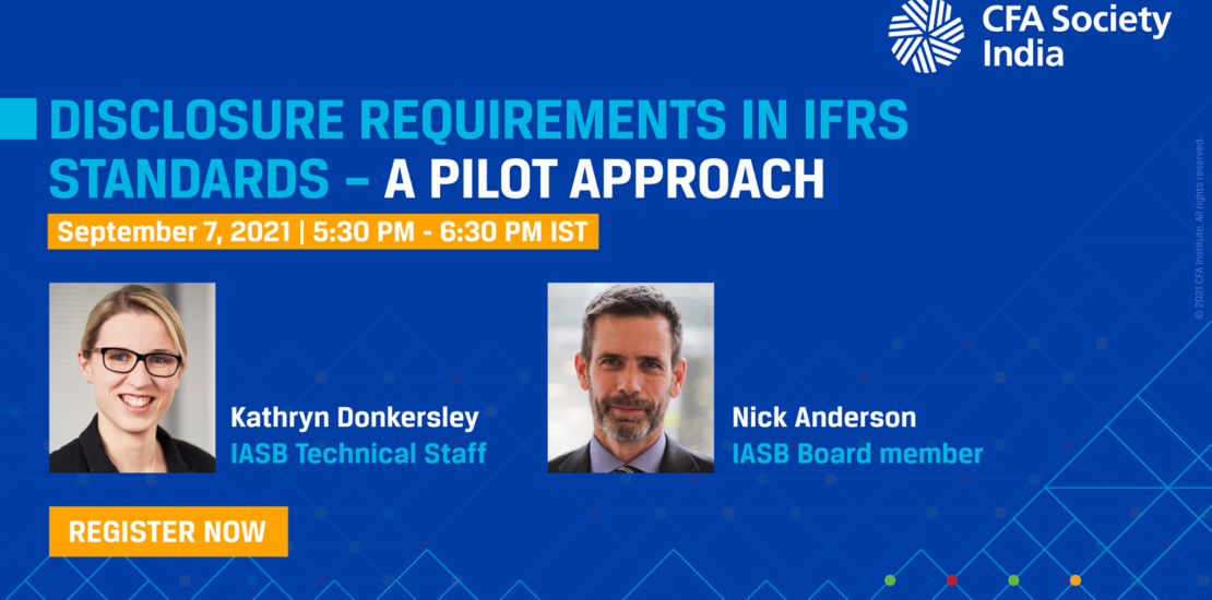 We are pleased to announce the upcoming webinar on Disclosure Requirements in IFRS Standards – A Pilot Approach, on 7th September 2021, 5.30 pm IST”. In this webinar, IASB Staff will provide members with an overview of the Board’s proposed new approach to... -